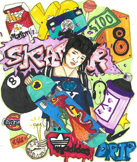 Met dit gekozen subcultuur heb ik op adobe photoshop een collage gemaakt. bij deze collage ging ik verschillende associaties vinden, die mij laten denken aan skaters.
