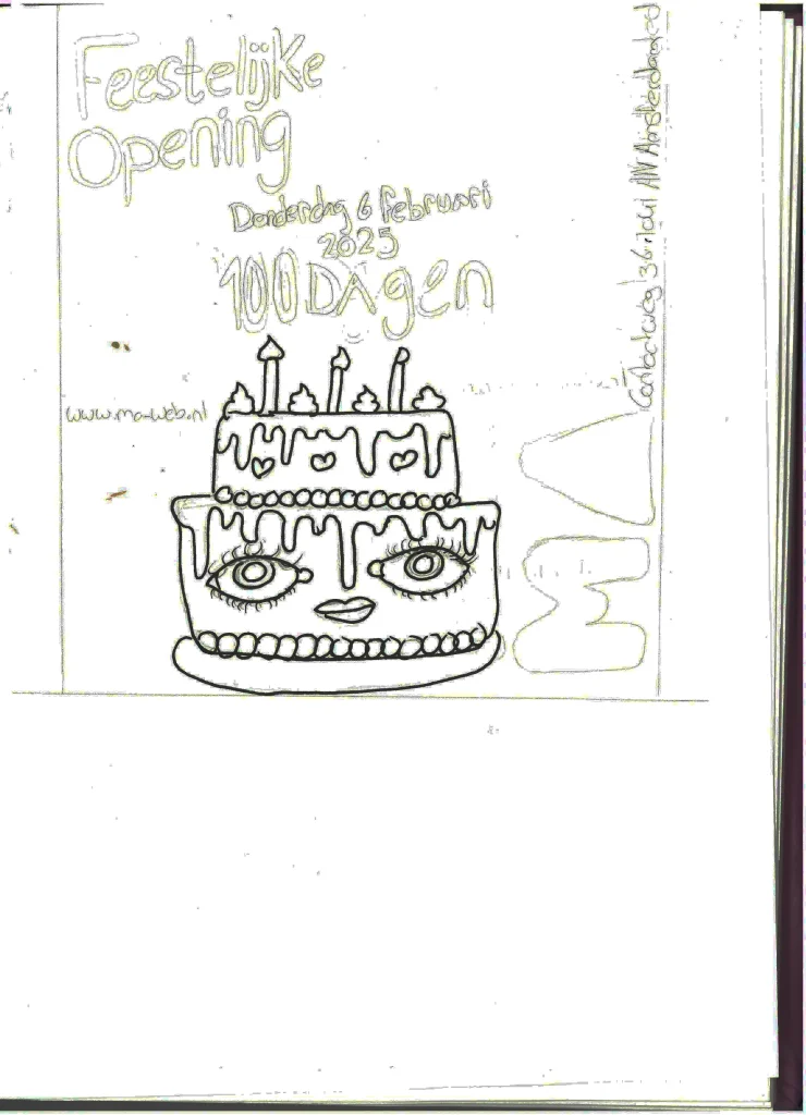 Bij het ontwerp was het belangrijk dat de informatie voor de open dag duidelijk zichtbaar was. Daarom heb ik ervoor gezorgd dat de datum, straatnaam en website helder en overzichtelijk op de poster staan.