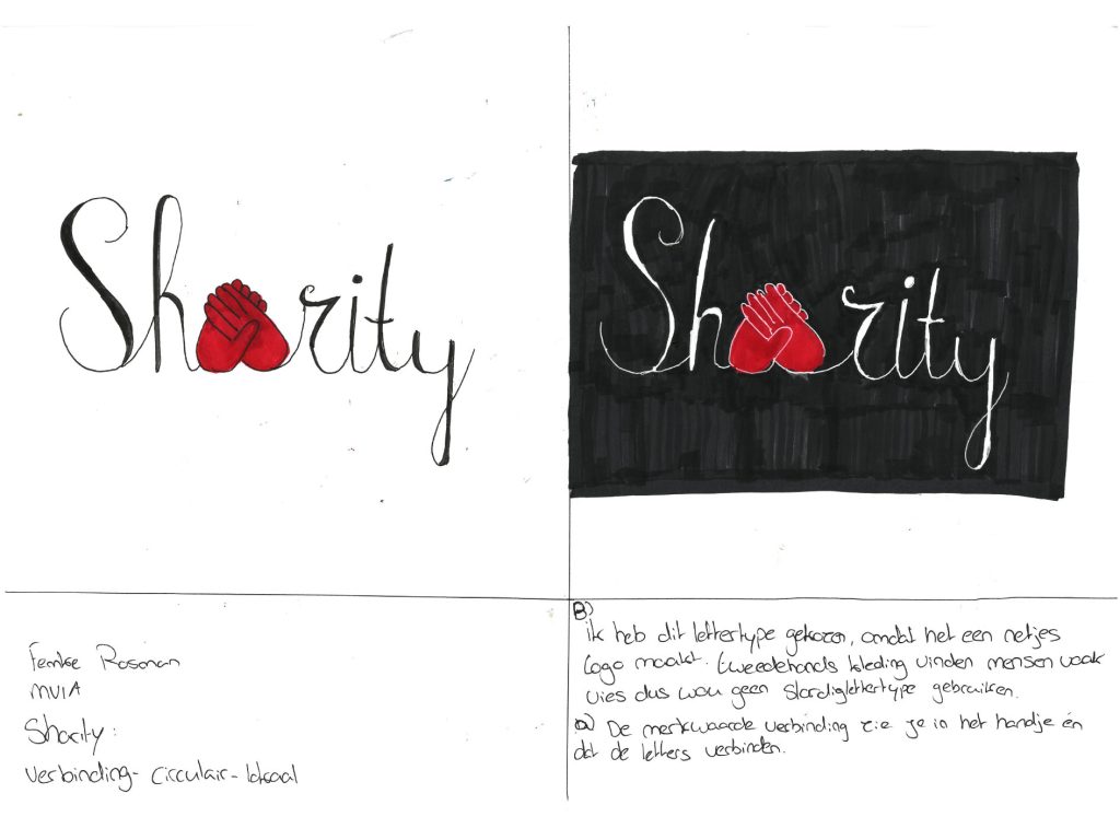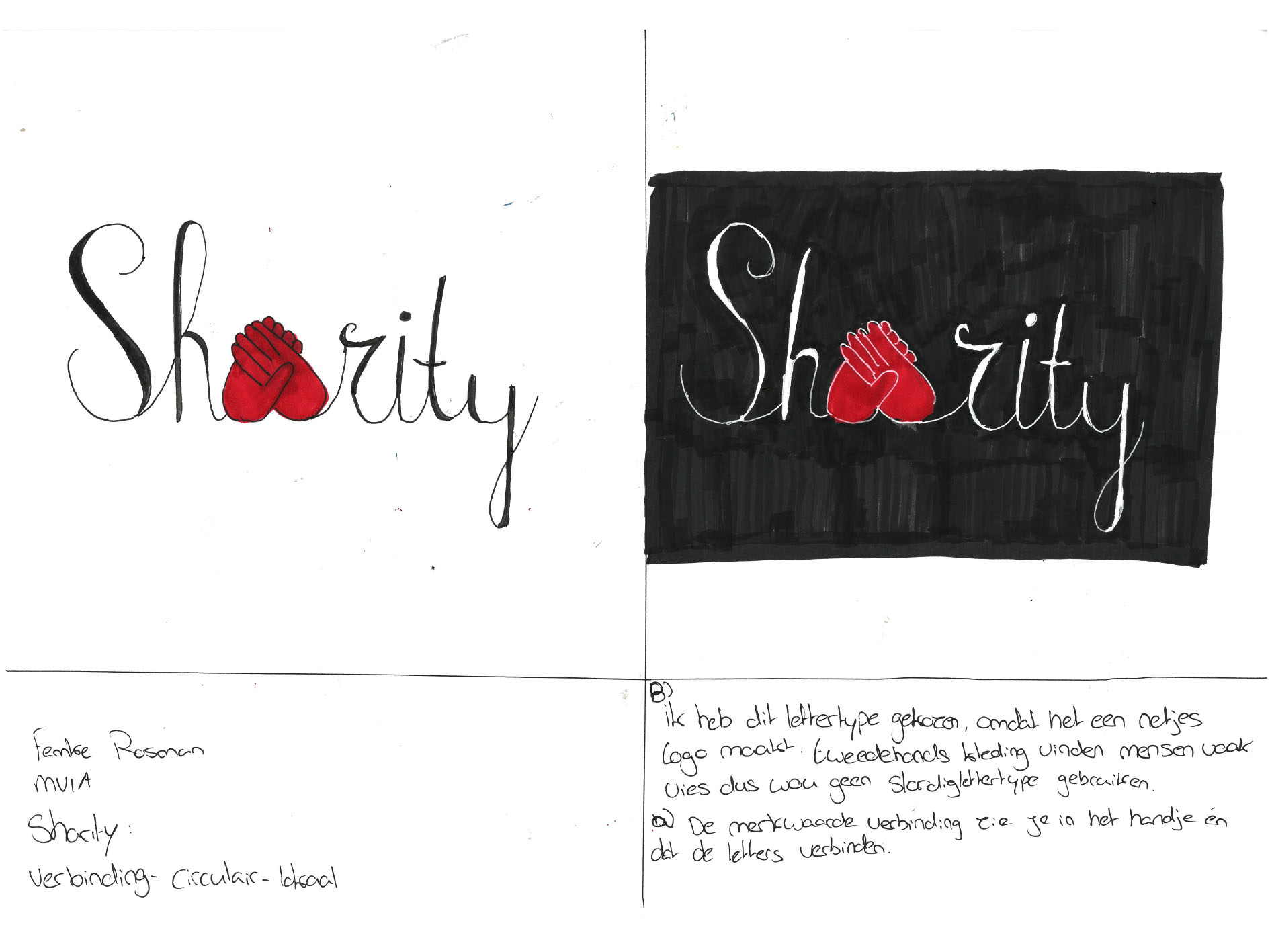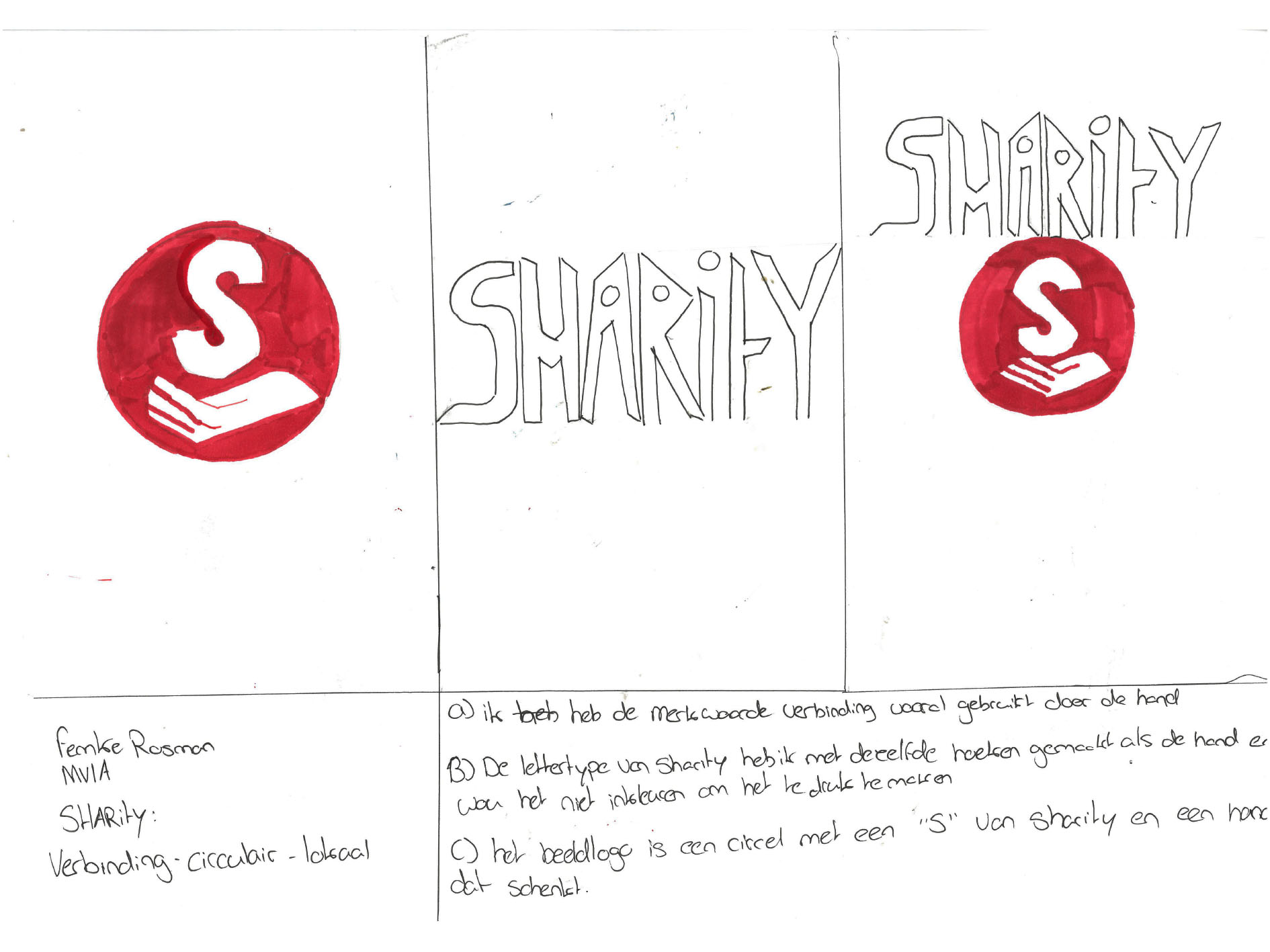 Voor het bedrijf Sharity ben ik eerst gaan brainstormen en verschillende logo’s gaan maken. Dit vond ik zelf best moeilijk, omdat het lastig was om te bepalen welke kleuren en typografie echt passen bij een duurzaam bedrijf. Na het maken van meerdere schetsen heb ik uiteindelijk gekozen voor een combinatie van dikke en dunne typografie in een groene kleur. Als icoon heb ik gekozen voor een rood logo met een S en een hand. De hand onder de S in het rode logo staat symbool voor het delen (sharen).